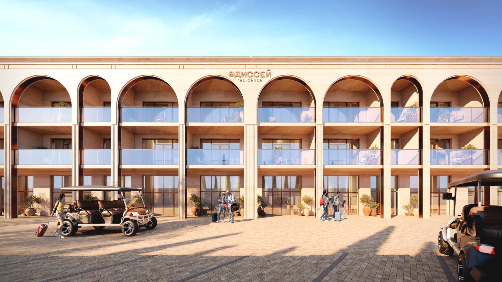 Одиссей Residence (Резиденс) — апарт комплекс в Евпатории, расположенный рядом с пляжем Лазурный берег, лечебным озером Мойнаки и сосновой рощей. Проект сочетает курортный формат, приватность малой этажности и выразительную средиземноморскую архитектуру, создавая редкий для Крыма формат недвижимости для отдыха и инвестиций. Авторское озеленение, натуральный травертин, закрытая территория и продуманные зоны релакса формируют атмосферу уединенного премиального отдыха. Одиссей Residence подойдет тем, кто ищет апартаменты у моря в Крыму с оздоровительным потенциалом, эстетикой резиденции и высокой курортной ценностью.
