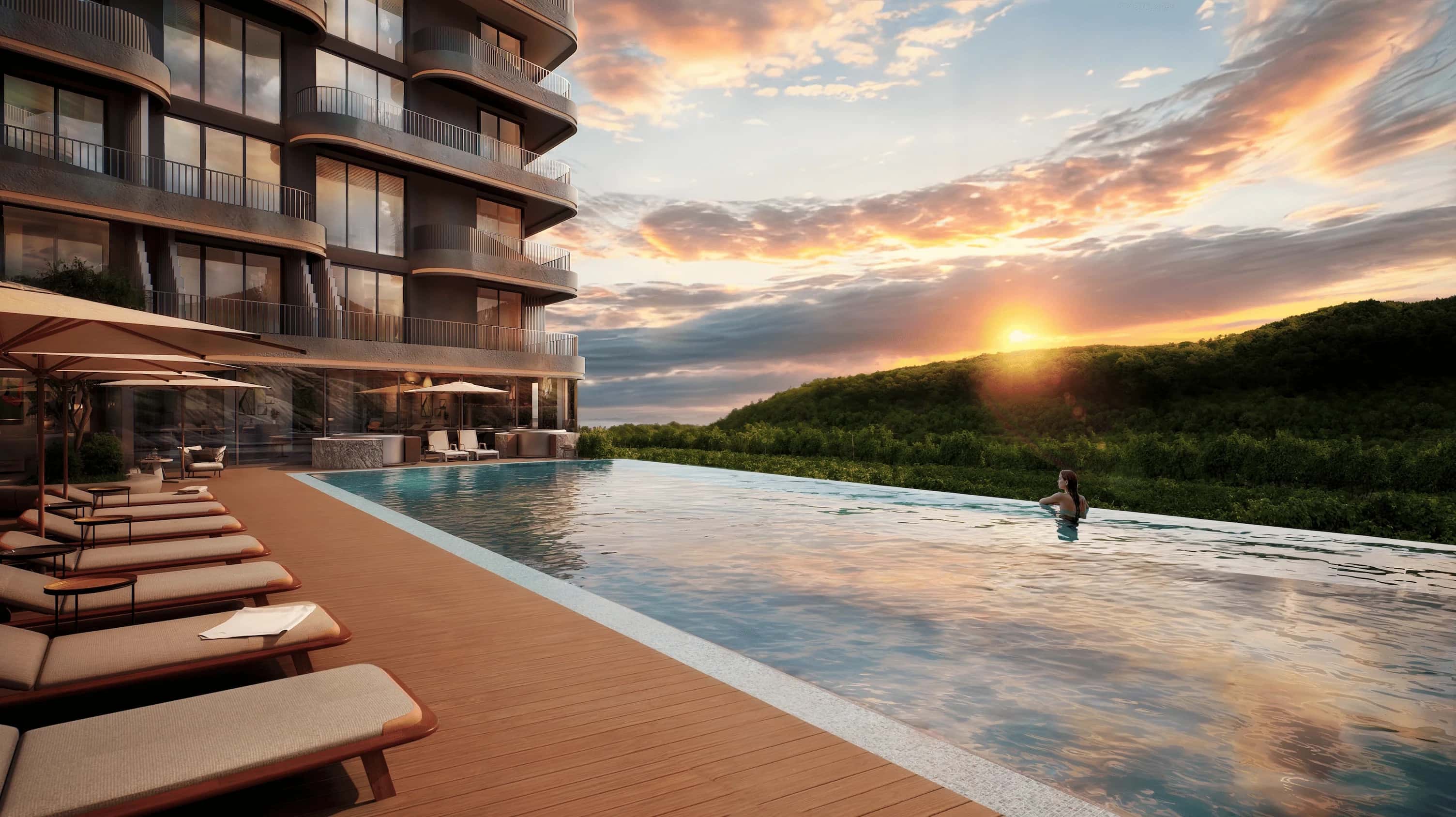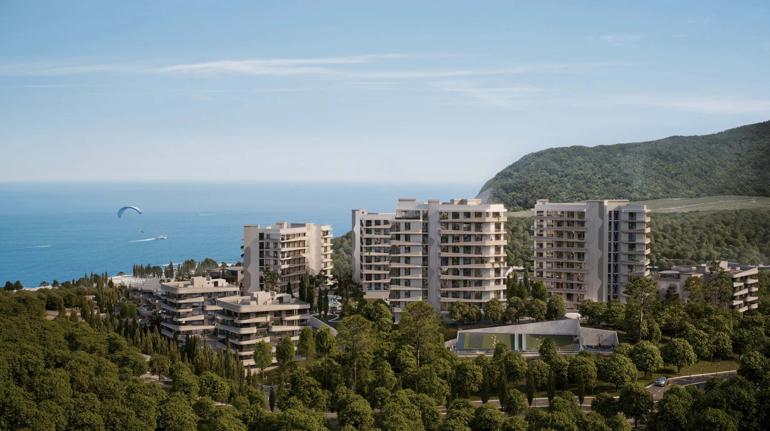 Здесь сочетаются приватность природной долины у села Весёлое и сервис уровня 5★: SPA, термальные процедуры и грязелечение, бассейн с морской водой, ресторан, фитнес, теннисный корт, конференц-пространство, подземный паркинг, вертолётная площадка, видеонаблюдение и охрана 24/7, детские и спортивные зоны, аллеи и открытый кинотеатр. Архитектура повторяет рельеф, а панорамные окна раскрывают виды на море и виноградники. Подходит для отдыха и инвестиций в аренду.